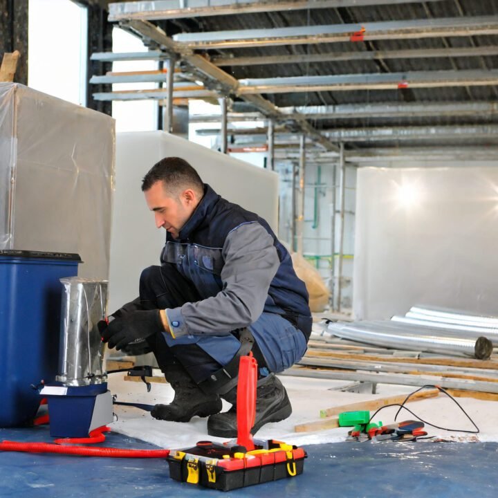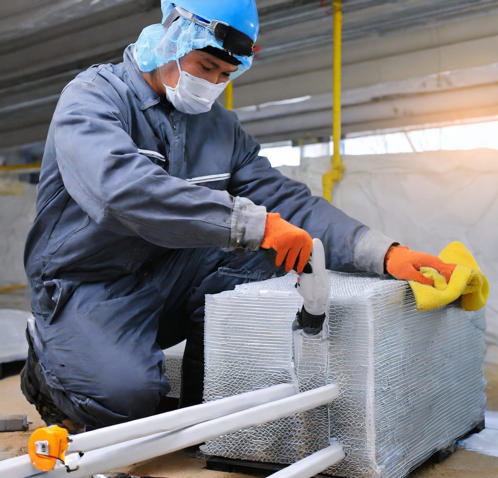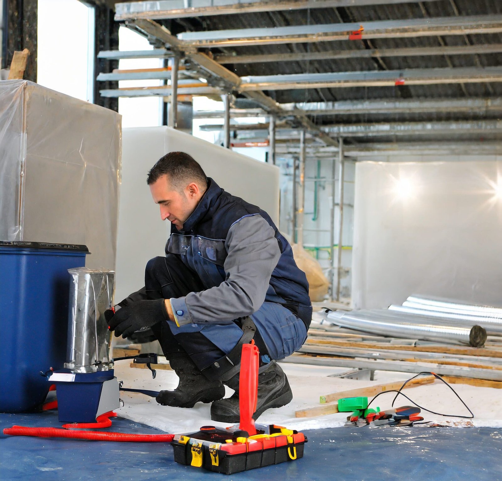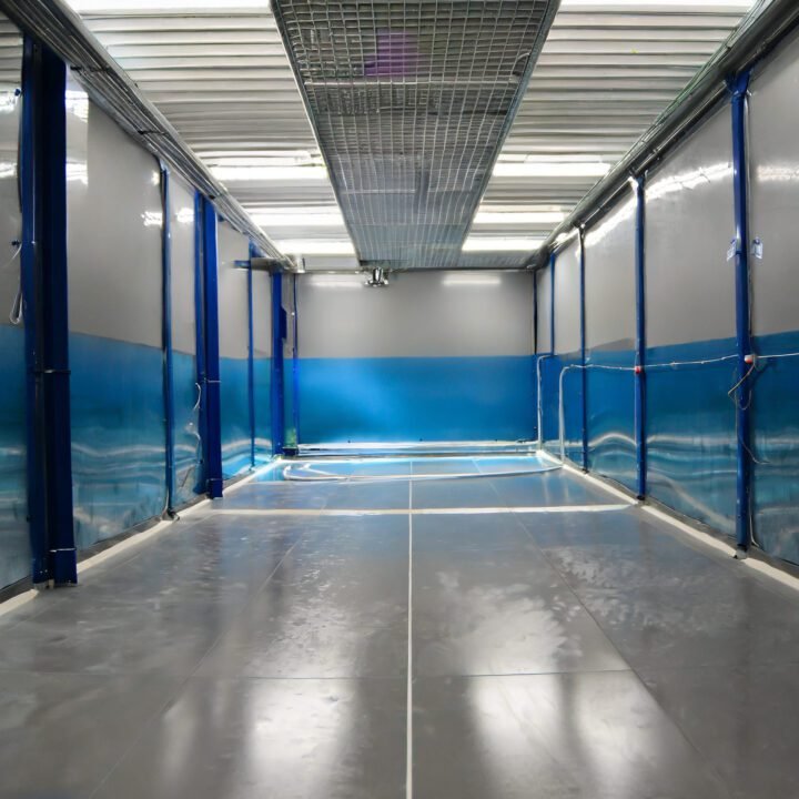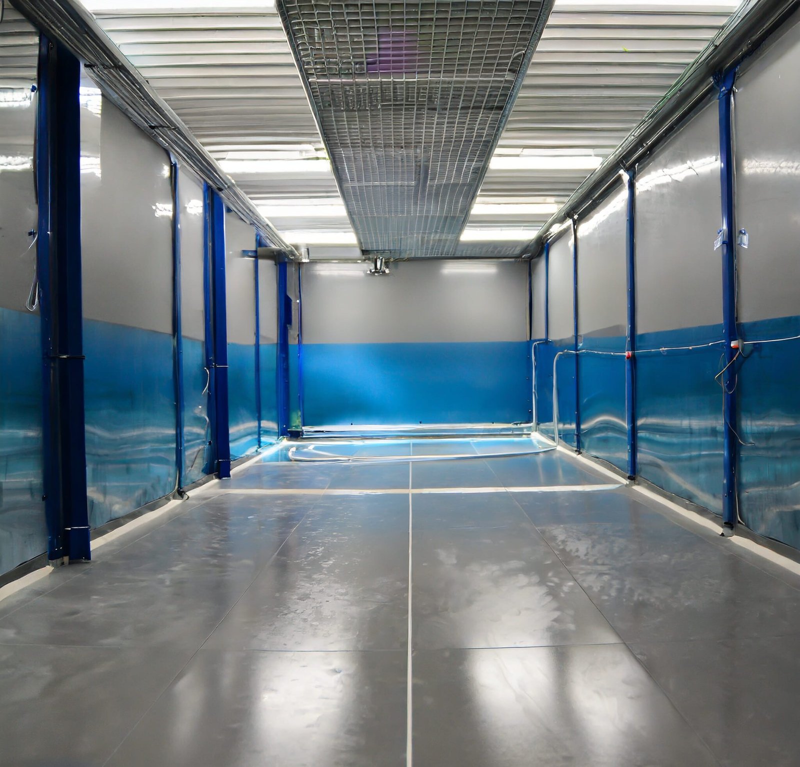 Trabajos de construcción de cuartos fríos, cuartos de almacén y piso epóxico industrial color gris.